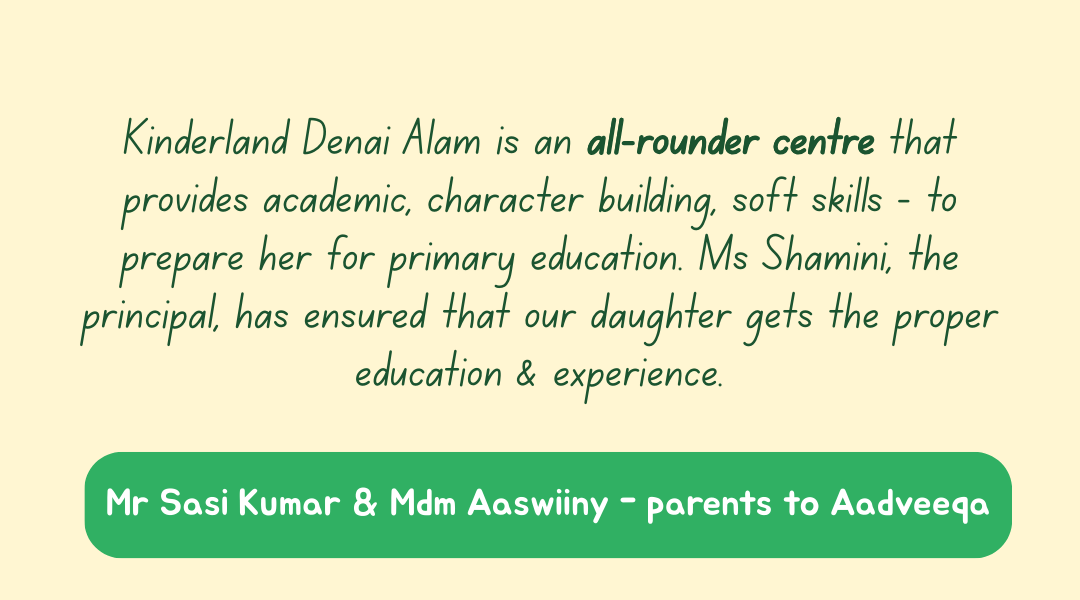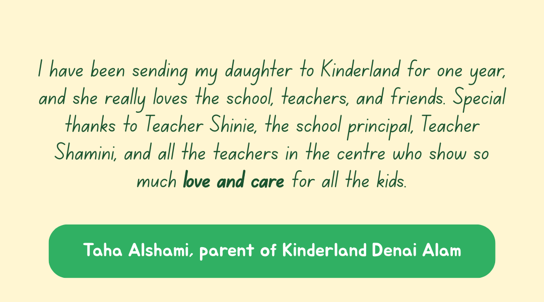 Kinderland Denai Alam offers programmes from 18 months old – 6 years old.