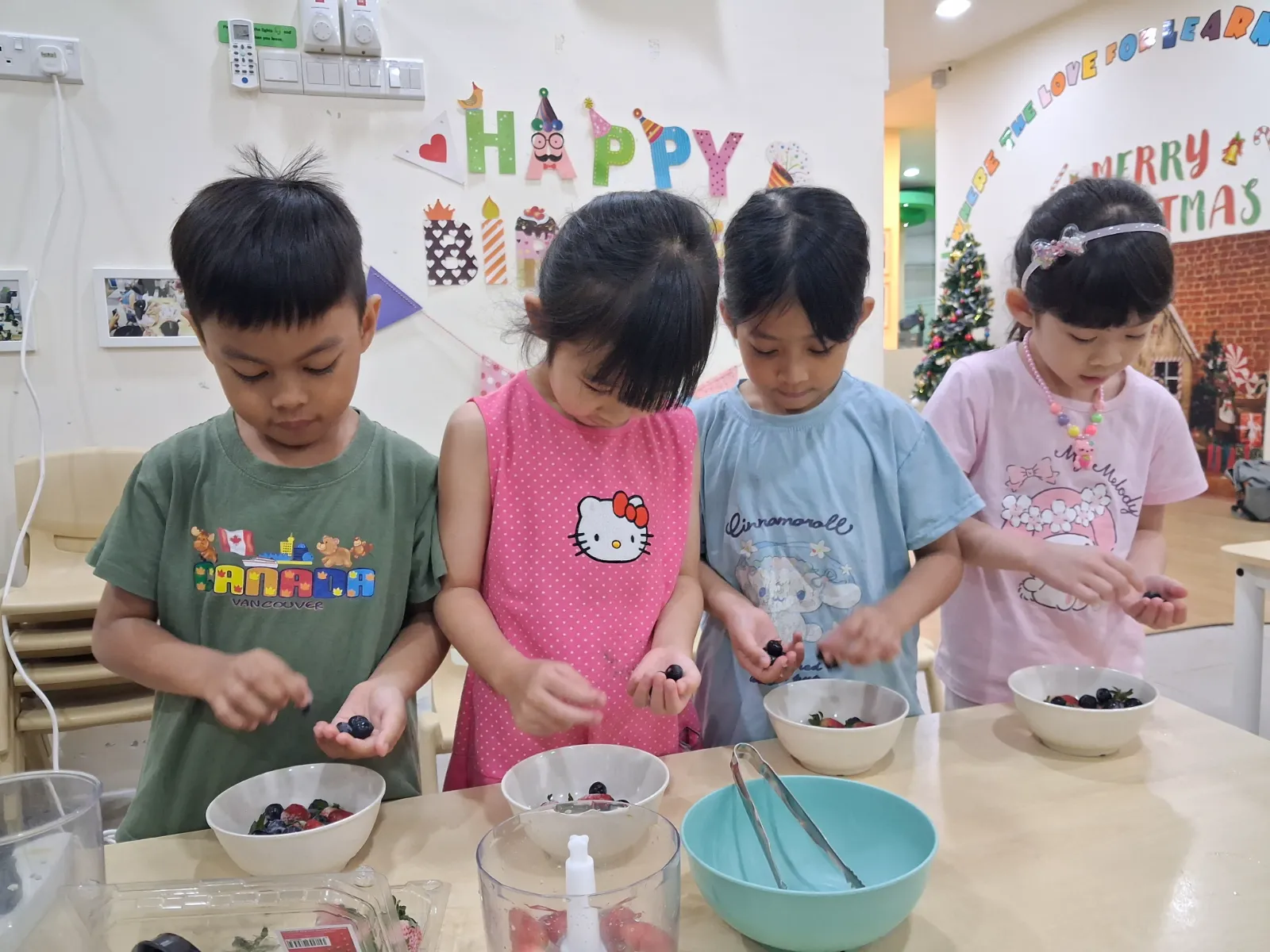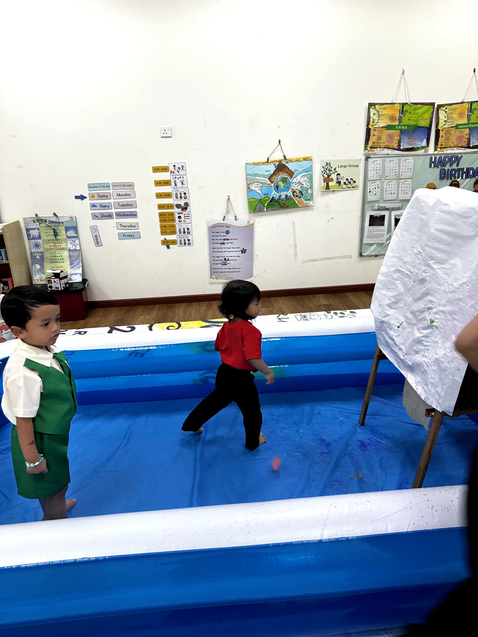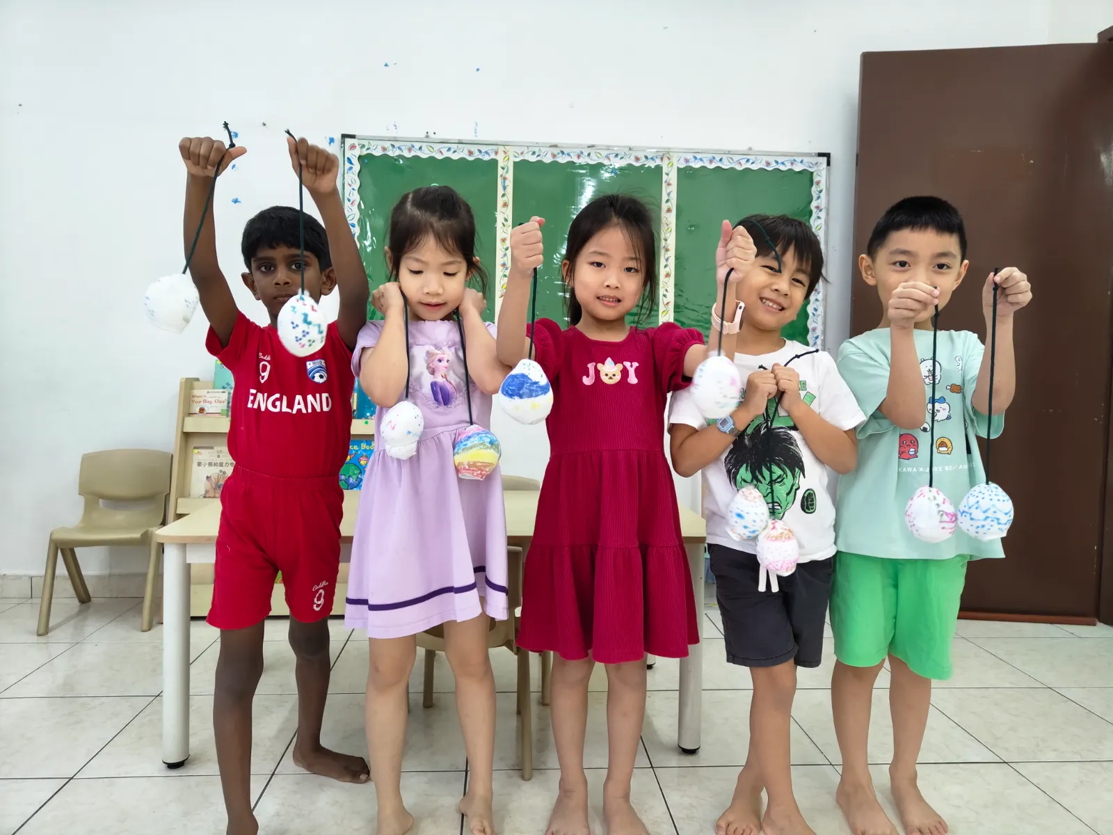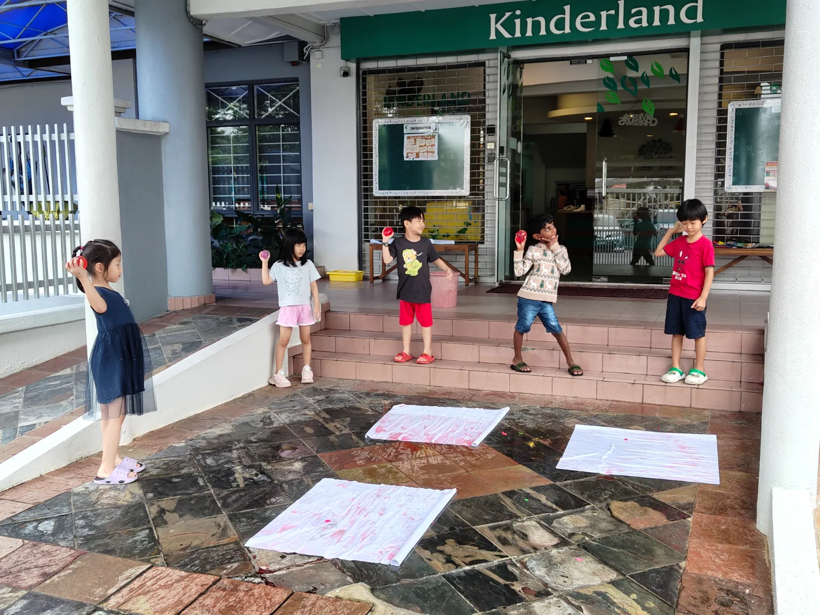The journey concluded in Spain, that started with a traditional game called Mar y Tierra – a simple listening and jumping game which the children repeatedly played. The children continued with Spanish food tasting using staple ingredients found in Spain, created azulejos mosaic tile art and DIY castanets using paper plate and bottle caps. The day ended with a fun-filled Kinderland version of La Tomatina using coloured water balloons.