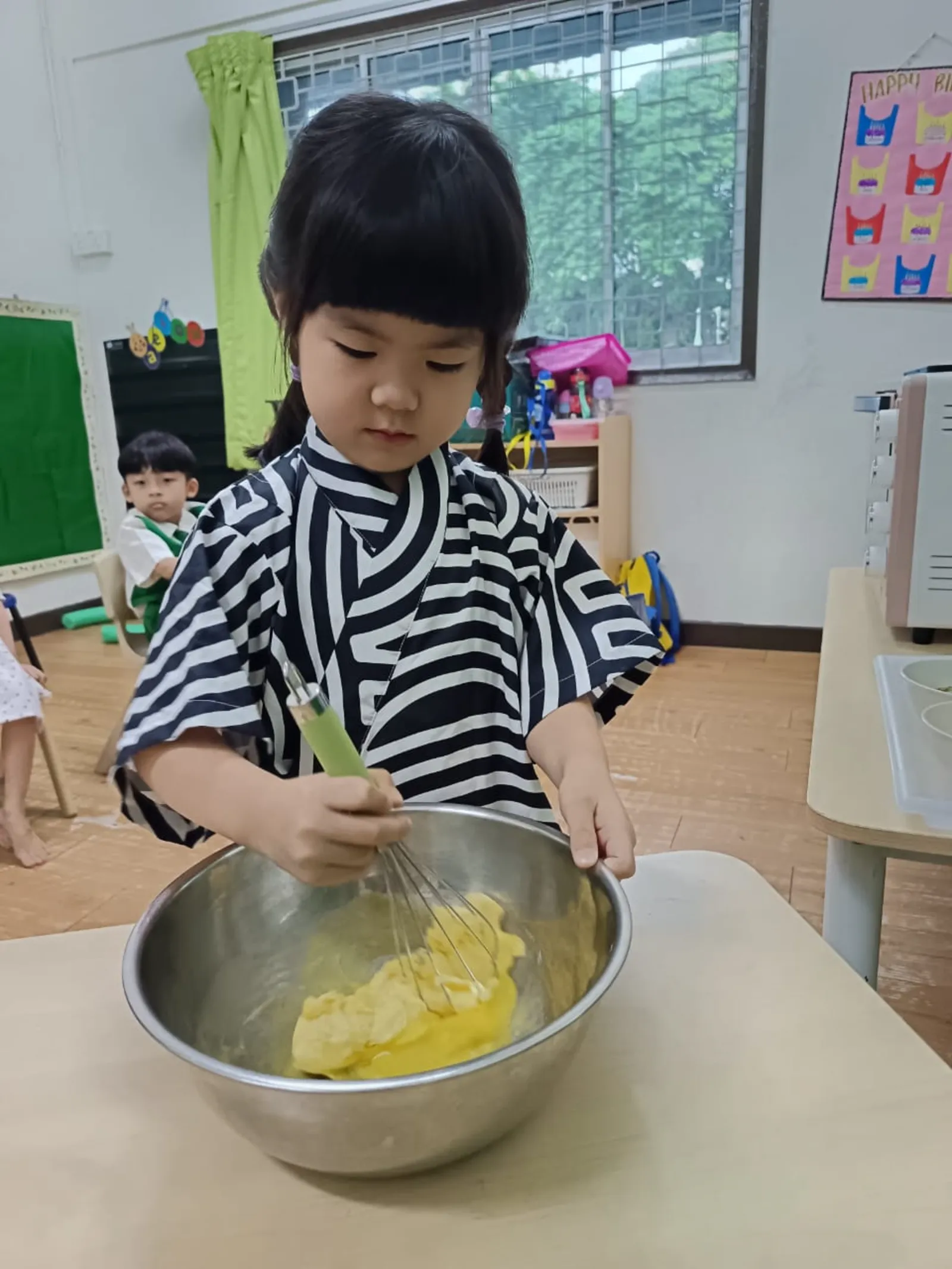 The adventure began with South Africa, where children explored diverse geographical biomes and animal habitats. Through hands-on activities like creating animal footprints using salt dough and tracking them around the centre, children developed logical thinking and observation skills. The day came alive with a drum circle session using maracas, claves, and bongos, followed by making Melktert, no-bake milk tarts and designing vibrant African ceremonial masks.