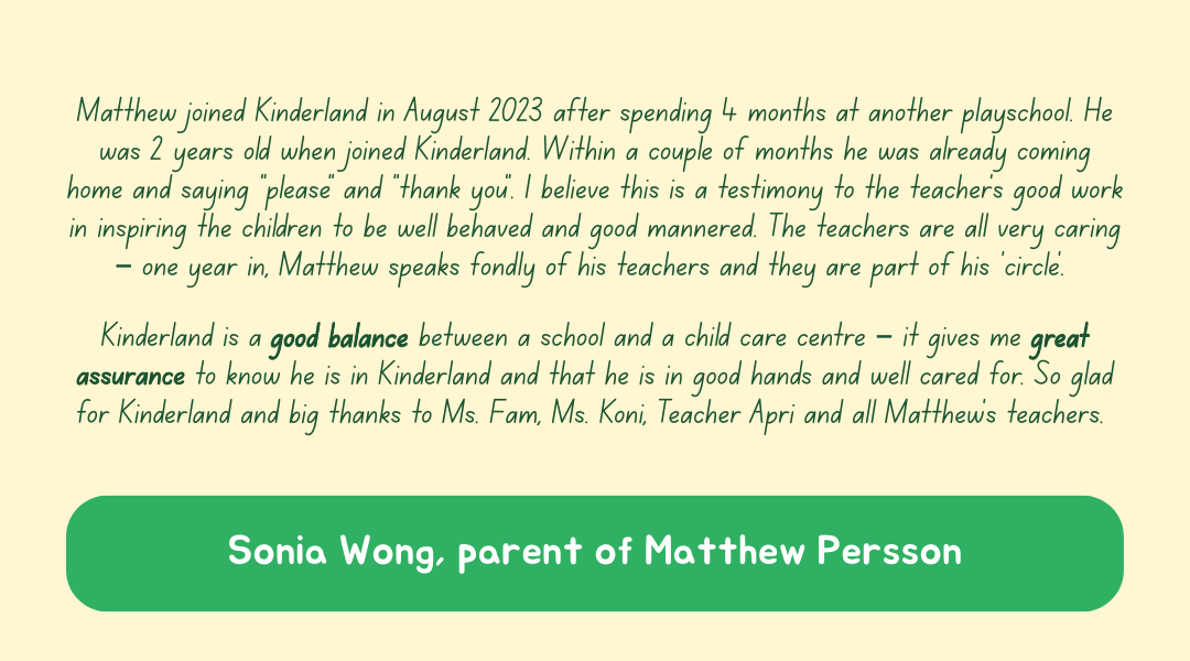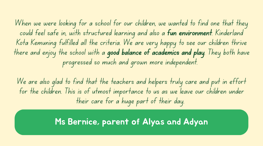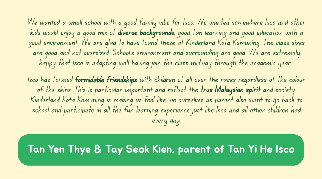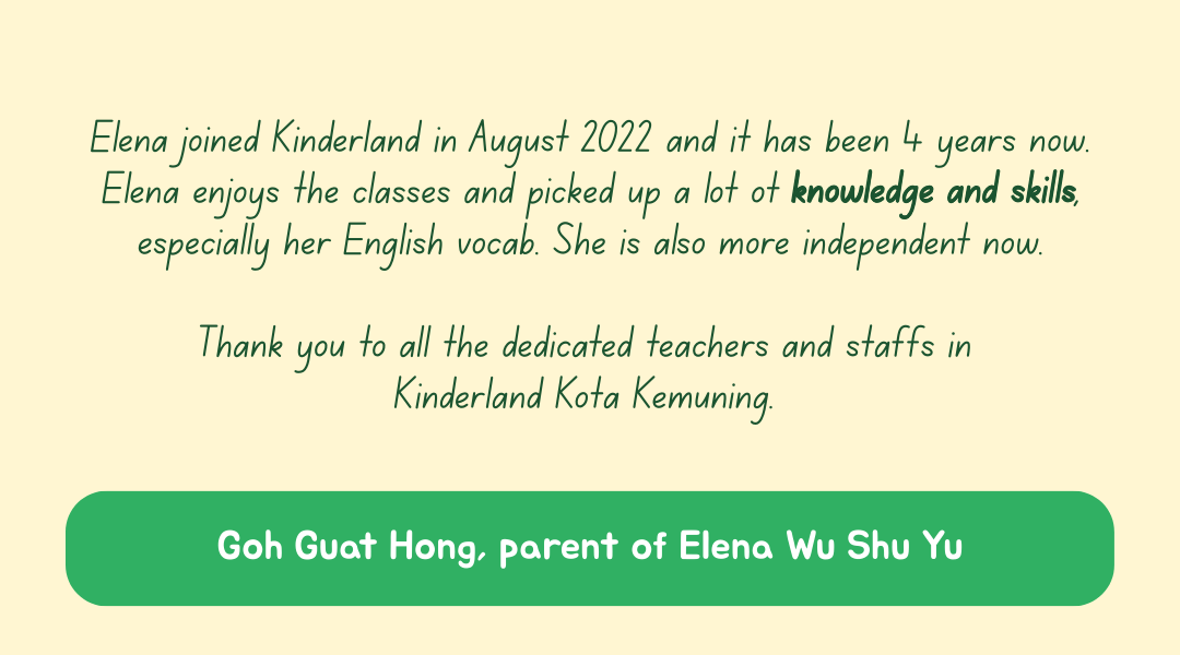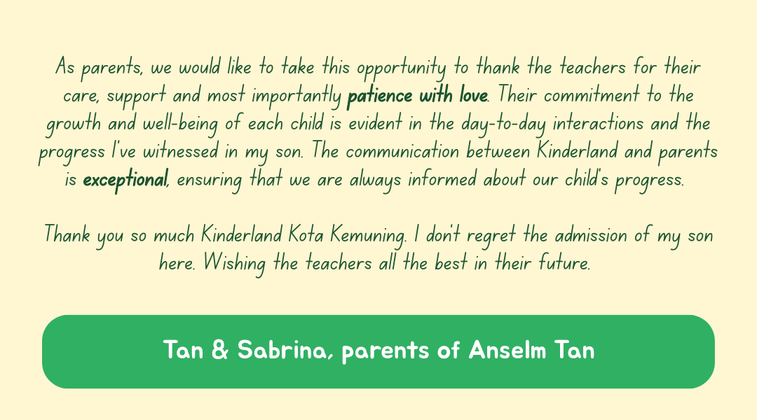 For over two decades, Kinderland Kota Kemuning has remained committed to nurturing young learners and supporting families in the community — providing children with a strong foundation for lifelong learning.